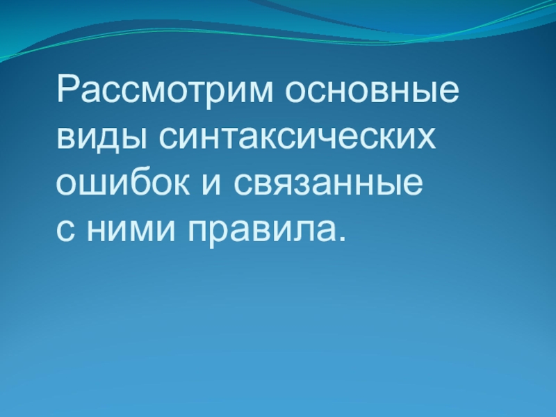 Слайд 11Рассмотрим основные виды синтаксических ошибок и связанные