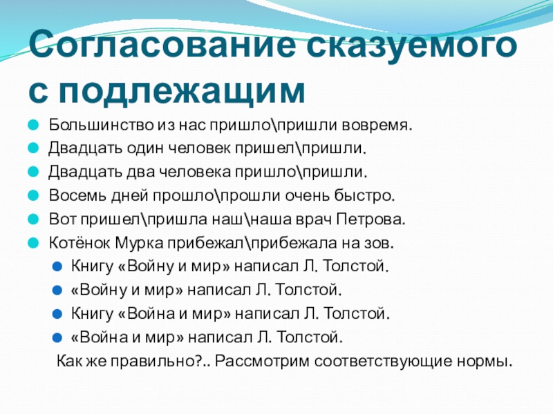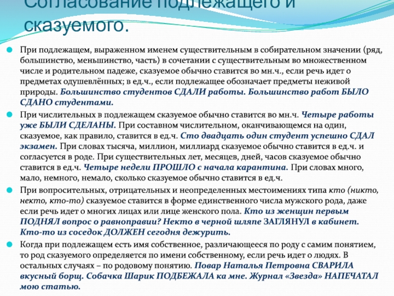 Слайд 14Согласование подлежащего и сказуемого.