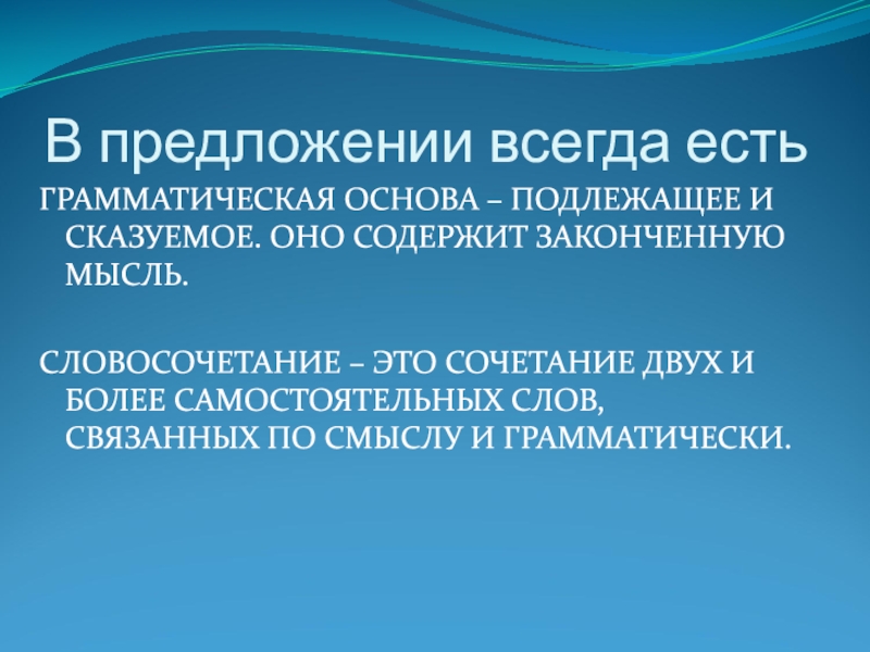 Слайд 4В предложении всегда есть