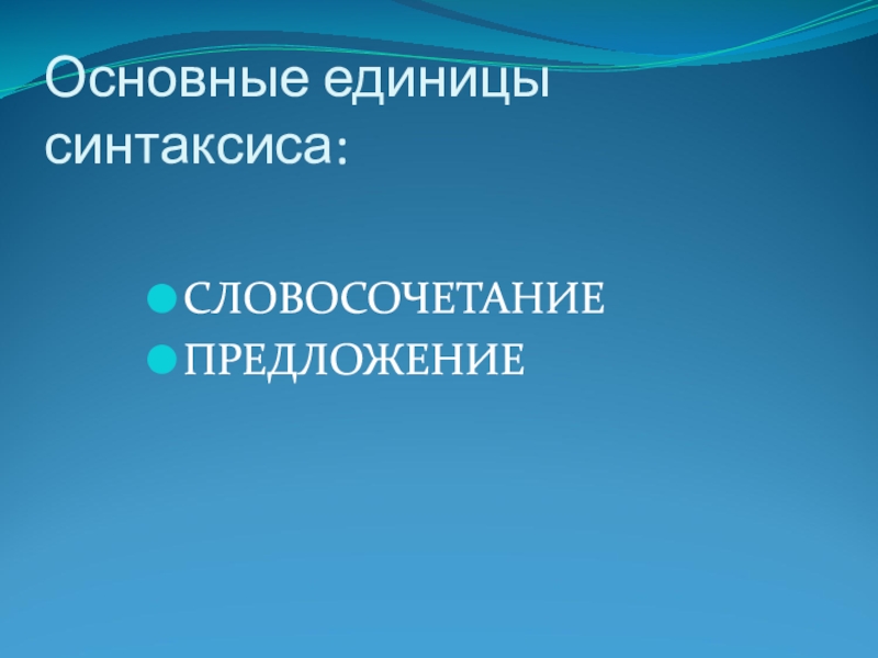 Слайд 3Основные единицы синтаксиса: