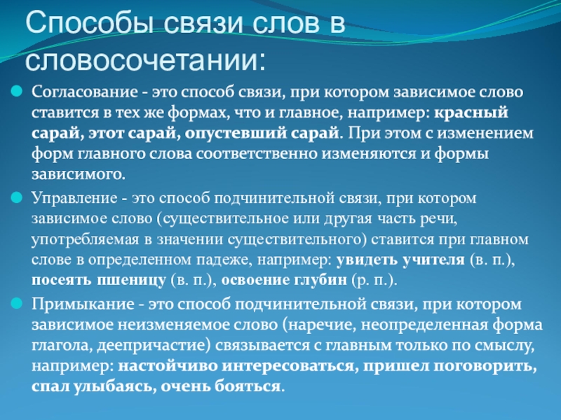 Слайд 5Способы связи слов в словосочетании: