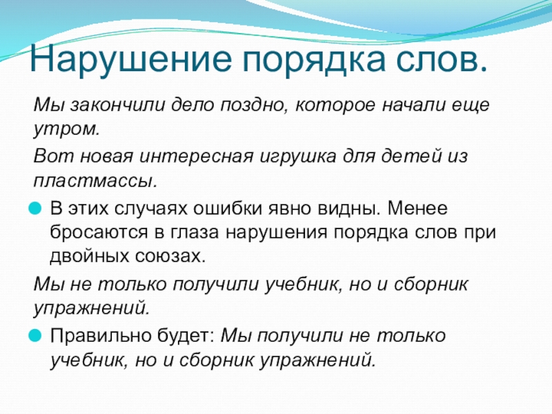 Слайд 12Нарушение порядка слов.
