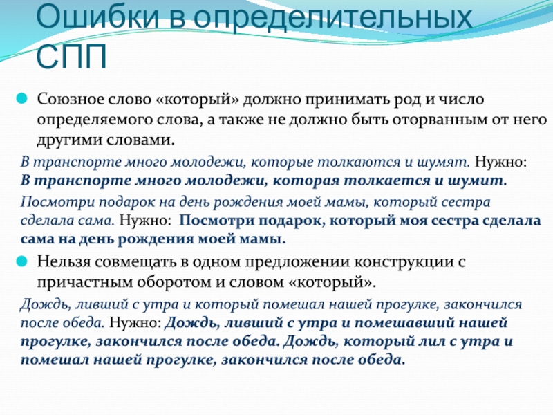 Слайд 21Ошибки в определительных СПП