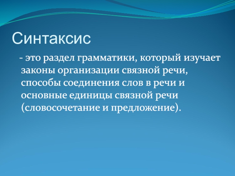 - это раздел грамматики, который изучает законы организации связной