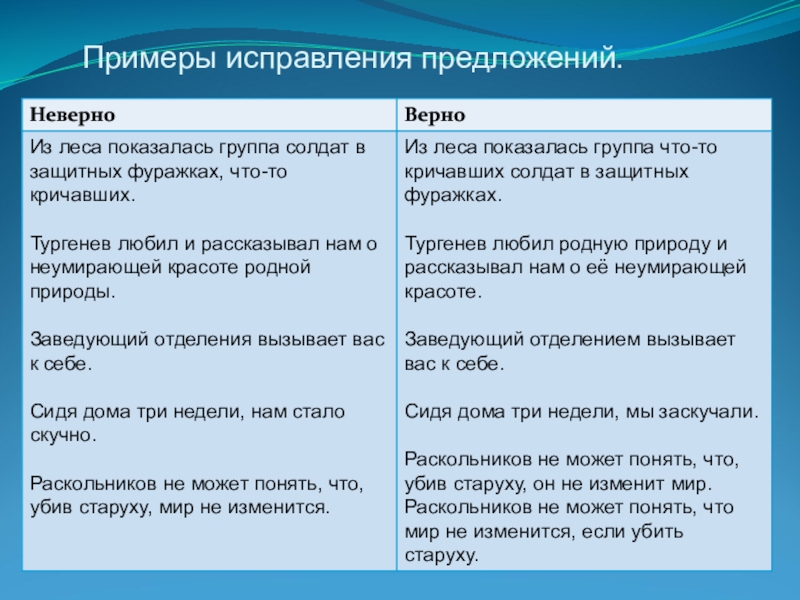 Слайд 25Примеры исправления предложений.