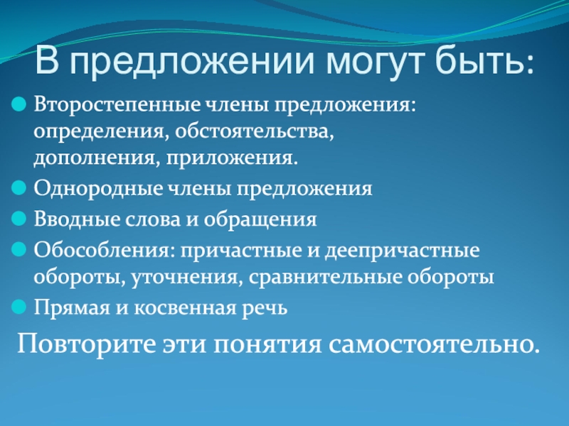 Слайд 7В предложении могут быть: