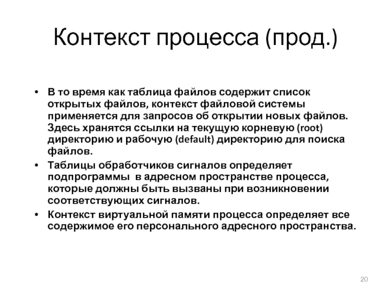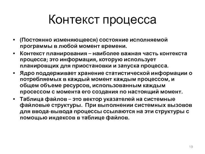 Когда данные читаются из одного из этих файлов, proc собирает соответствующую информацию, преобразует ее в текстовую форму и помещает в буфер чтения соответствующего процесса.
