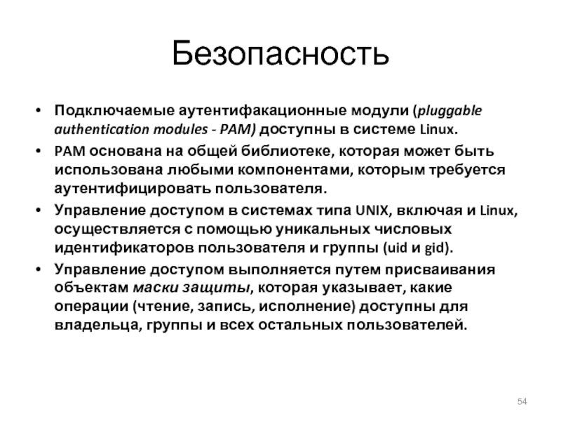 Управление доступом в системах типа UNIX, включая и Linux, осуществляется с помощью уникальных числовых идентификаторов пользователя и группы (uid и gid).