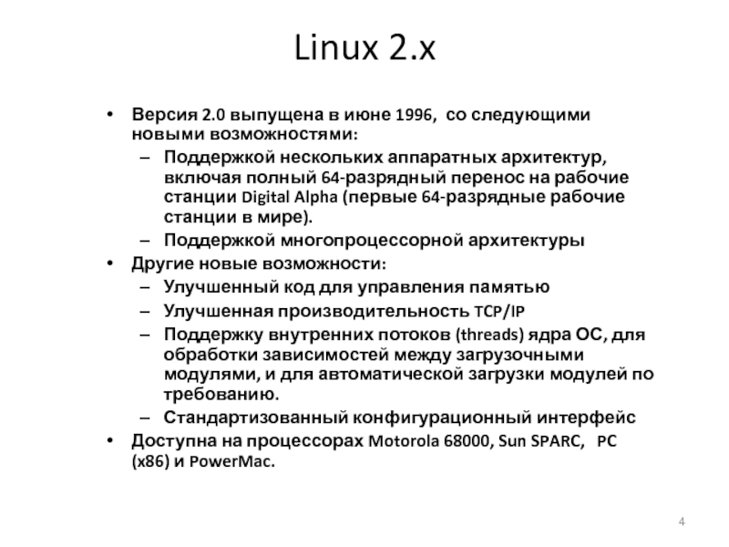 только на 80386-совместимых Intel – процессорах, имела очень ограниченный набор