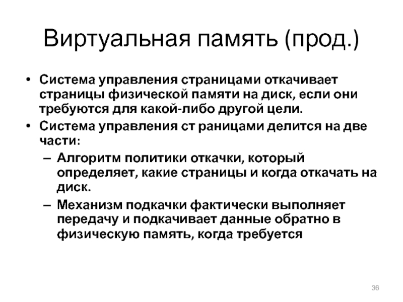 Ядро отвечает за поддержку основных концепций (абстракций) ОС.