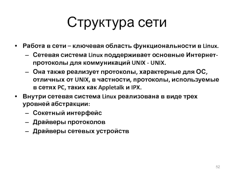 Внутри сетевая система Linux реализована в виде трех уровней абстракции: