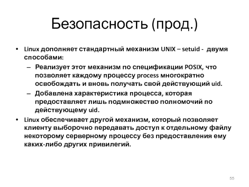 Linux дополняет стандартный механизм UNIX – setuid - двумя