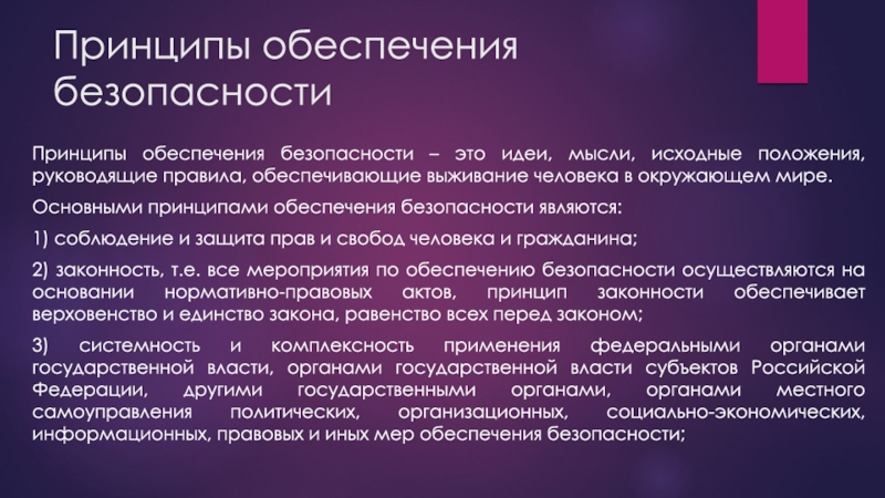 Принципы обеспечения безопасности – это идеи, мысли, исходные