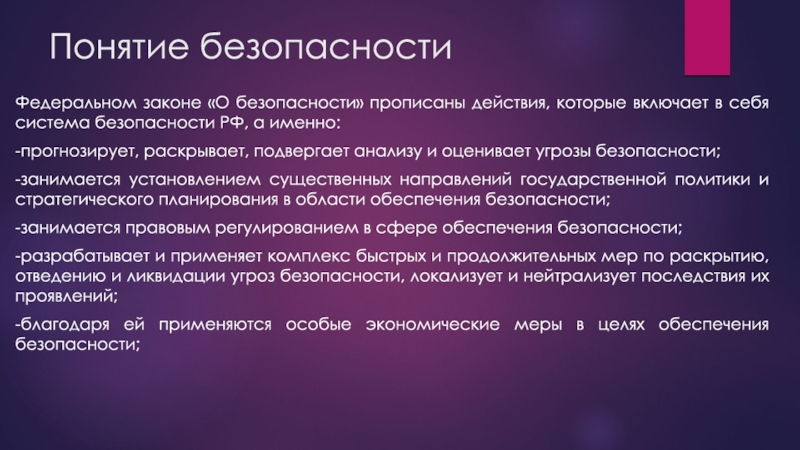 Федеральном законе «О безопасности» прописаны действия, которые включает в