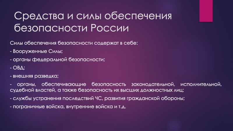 видов безопасности личности, социального окружения и государства в целом. В них включены: