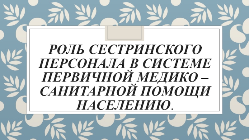 Роль сестринского персонала в системе первичной медико – санитарной помощи