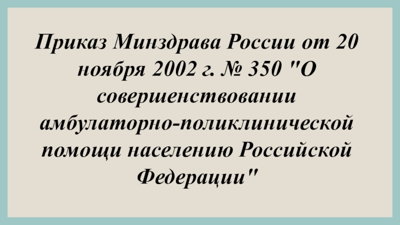 Слайд 16Приказ Минздрава России от 20 ноября 2002 г. № 350