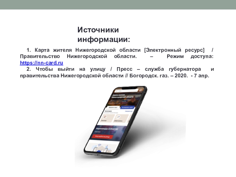 Источники информации: 1. Карта жителя Нижегородской области [Электронный ресурс] / Правительство Нижегородской области. – Режим доступа: https://nn-card.ru2.