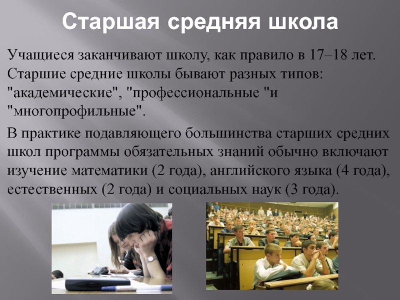 Слайд 12Старшая средняя школа