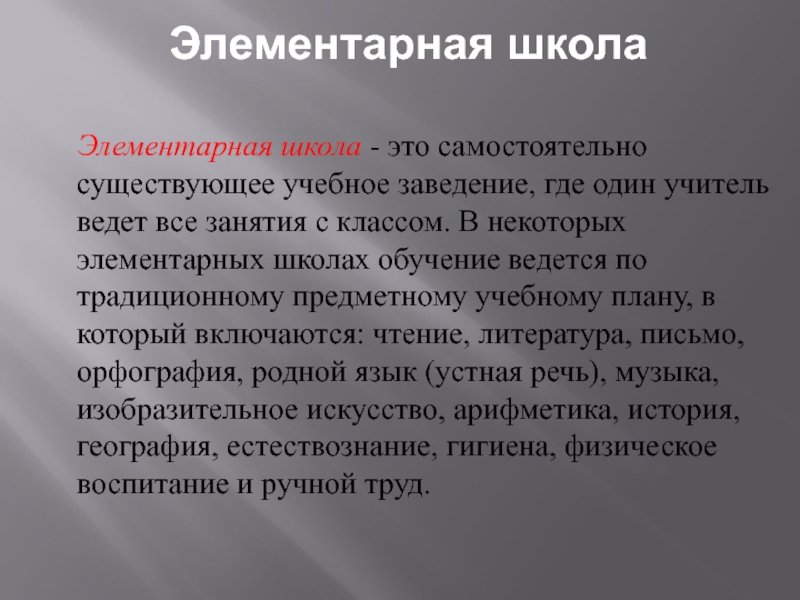 Элементарная школа - это самостоятельно существующее учебное заведение, где один