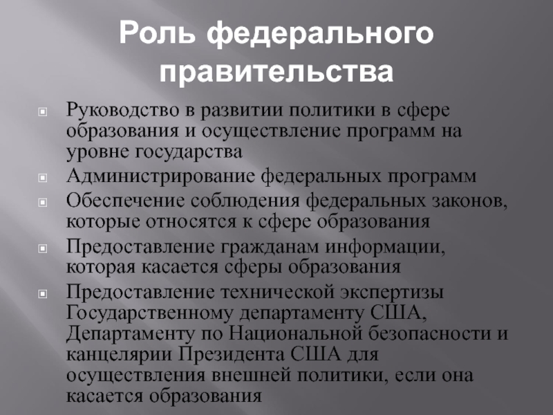 Слайд 17Роль федерального правительства