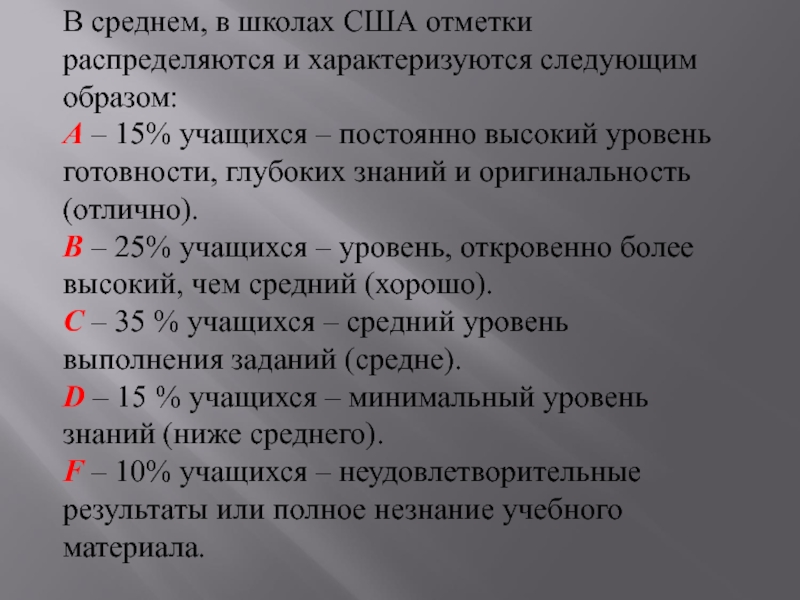 В среднем, в школах США отметки распределяются и характеризуются следующим