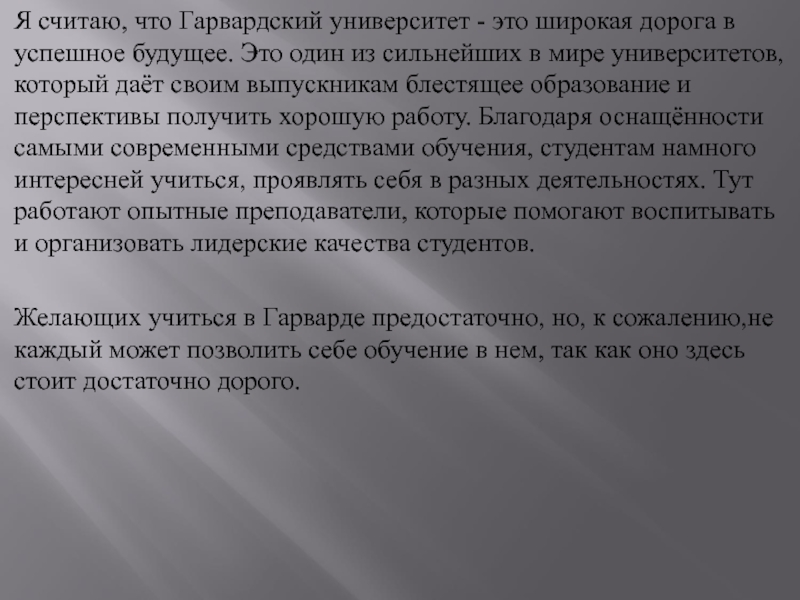 Слайд 53Я считаю, что Гарвардский университет - это широкая дорога в