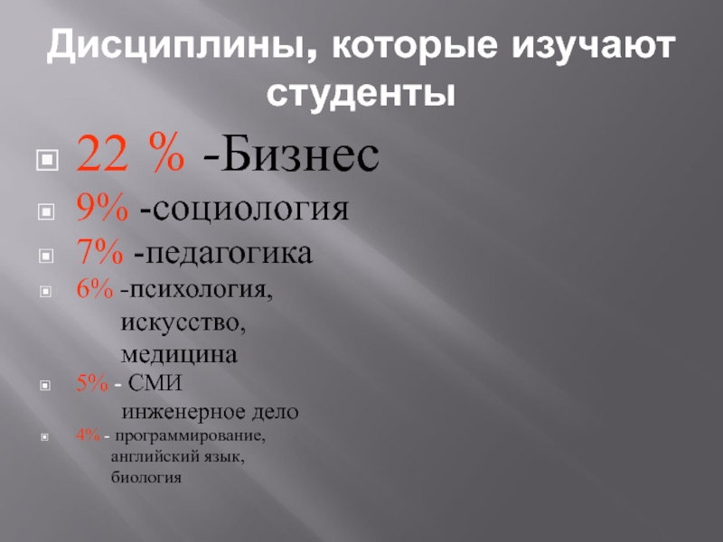 29 % юношей и девушек в возрасте от 18 до 24 лет становятся студентами колледжей и университетов.