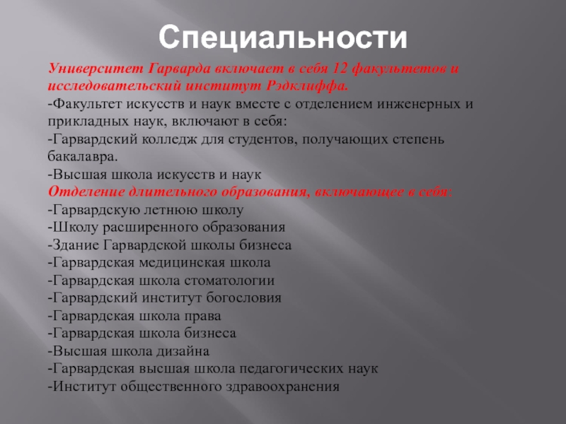 Слайд 49Университет Гарварда включает в себя 12 факультетов и исследовательский институт
