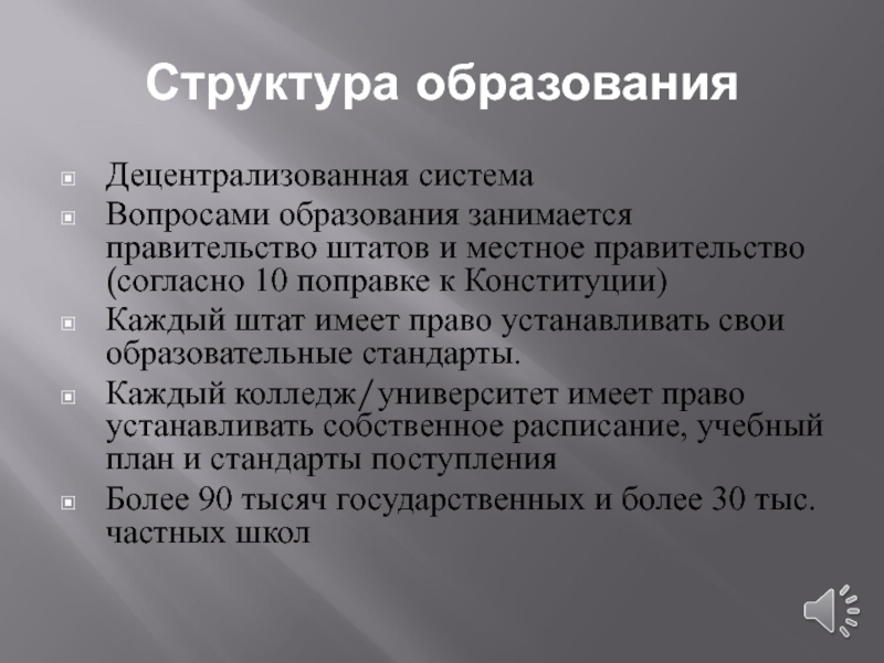 Слайд 1СИСТЕМА ОБРАЗОВАНИЯ В США