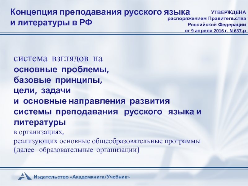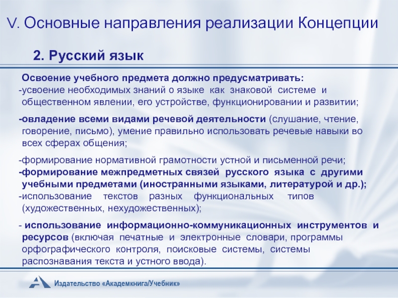 РЕАЛИЗАЦИЯ КОНЦЕПЦИИ ПРЕПОДАВАНИЯ РУССКОГО ЯЗЫКА