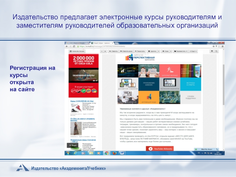 Слайд 40Издательство предлагает электронные курсы руководителям и заместителям руководителей образовательных организаций