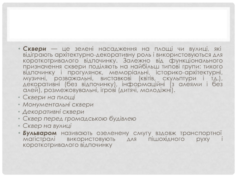 Слайд 6Сквери — це зелені насадження на площі чи вулиці, які