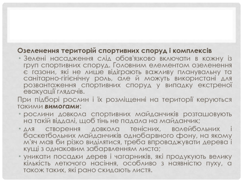 Слайд 12Озеленення територій спортивних споруд і комплексів