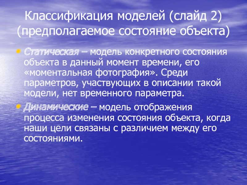 Слайд 8Классификация моделей (слайд 2) (предполагаемое состояние объекта)
