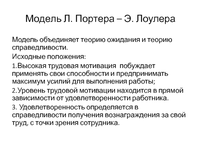 Слайд 12Модель Л. Портера – Э. Лоулера