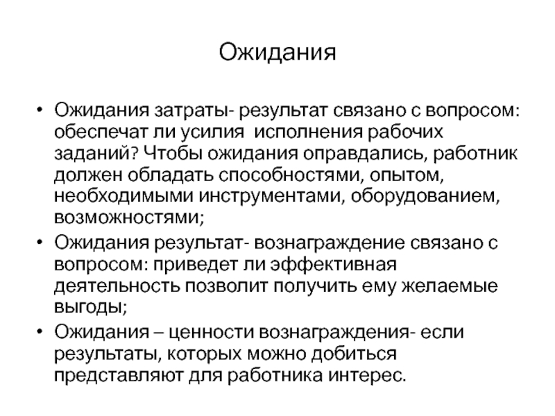 Ожидания затраты- результат связано с вопросом: обеспечат ли усилия исполнения