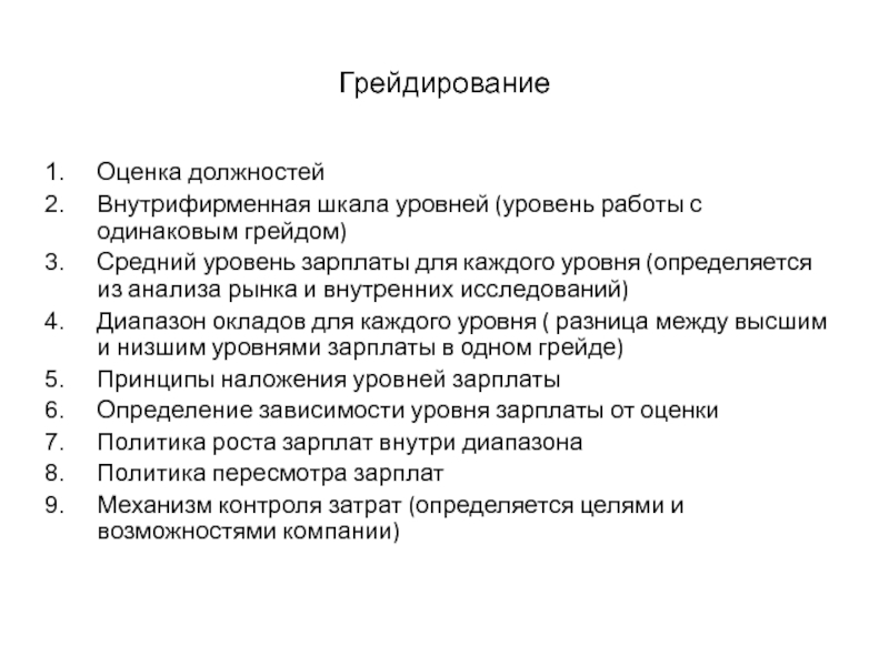 Грейд- разряд по оплате труда, определяющий вилку должностных окладов, оценивающую