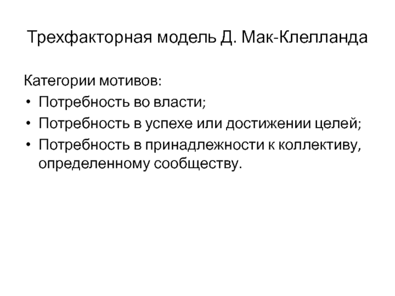 Слайд 8Трехфакторная модель Д. Мак-Клелланда