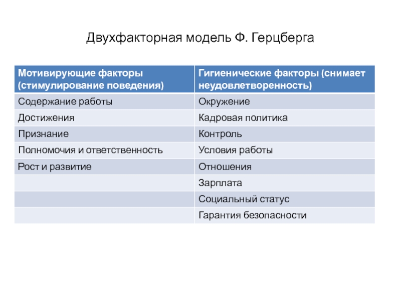 Слайд 7Двухфакторная модель Ф. Герцберга
