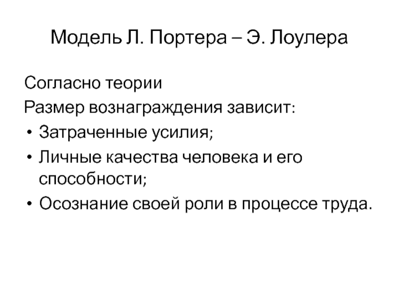 Слайд 13Модель Л. Портера – Э. Лоулера
