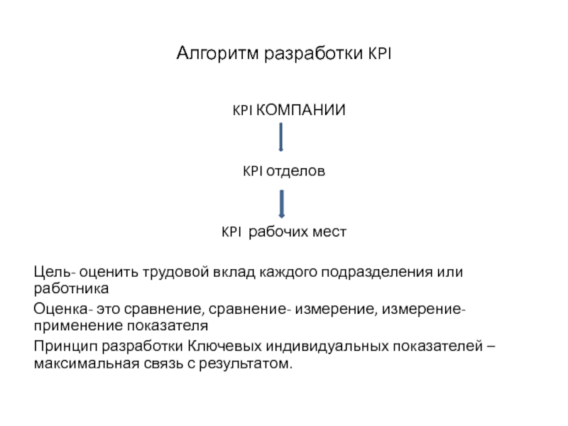Принцип разработки Ключевых индивидуальных показателей – максимальная связь с результатом.
