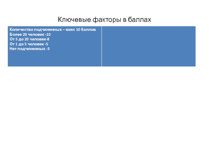 Определение факторов, влияющих на результативность (стаж по специальности, кол-во подчиненных, сложность, коммуникативность, управленческий уровень, статус подчиненности, ответственность)