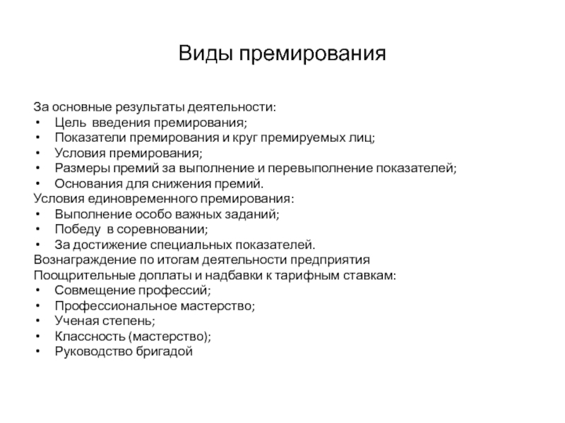 Поощрительные доплаты и надбавки к тарифным ставкам: