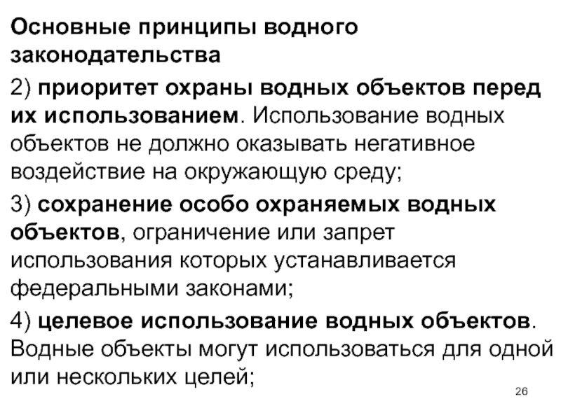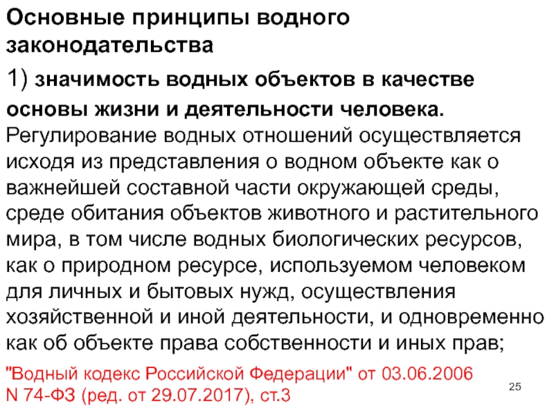 жизни и деятельности человека. Регулирование водных отношений осуществляется исходя из
