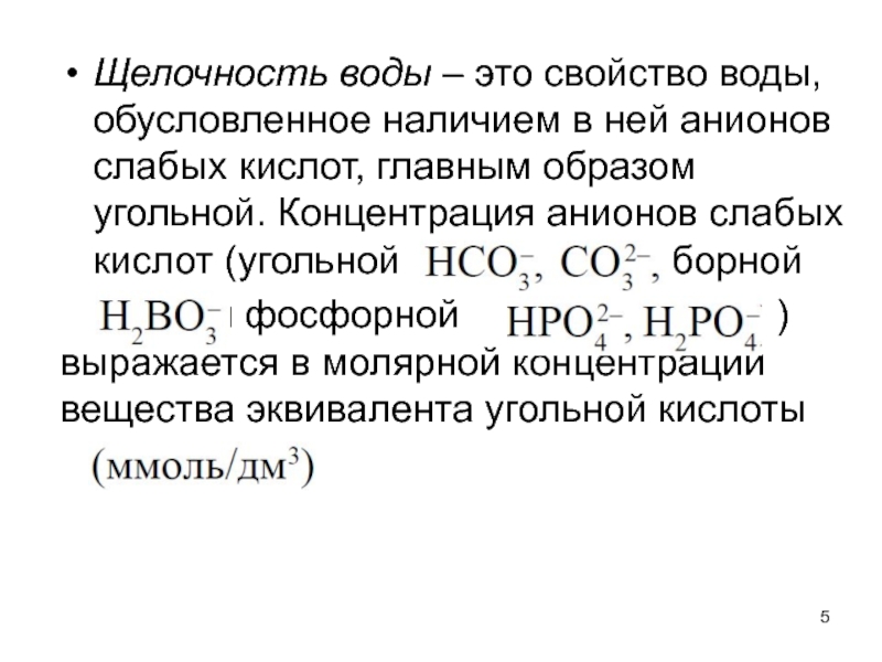Слайд 5Щелочность воды – это свойство воды, обусловленное наличием в ней