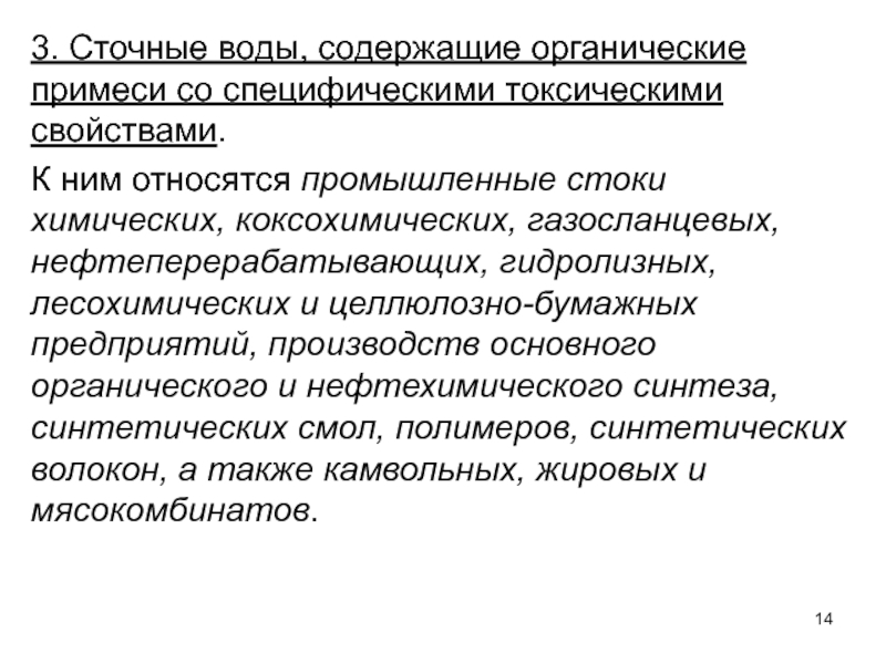 Слайд 143. Сточные воды, содержащие органические примеси со специфическими токсическими свойствами.