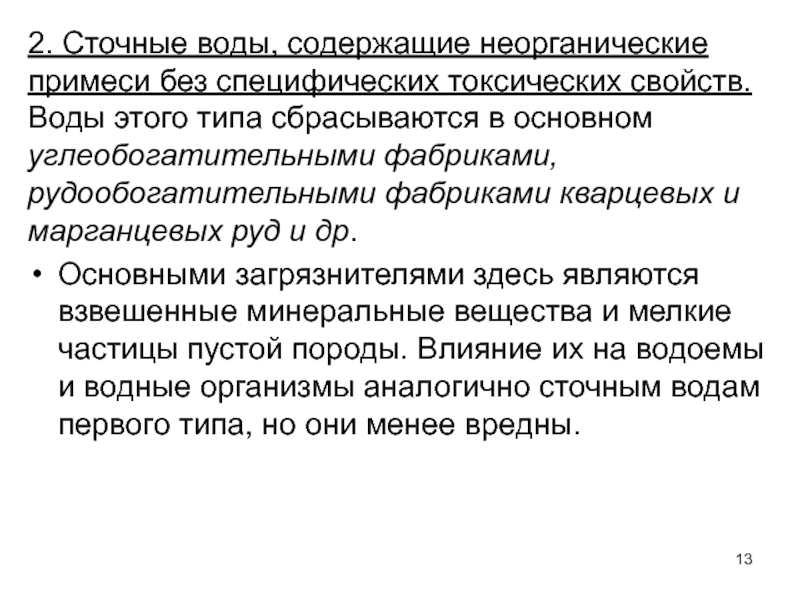 Слайд 132. Сточные воды, содержащие неорганические примеси без специфических токсических свойств.