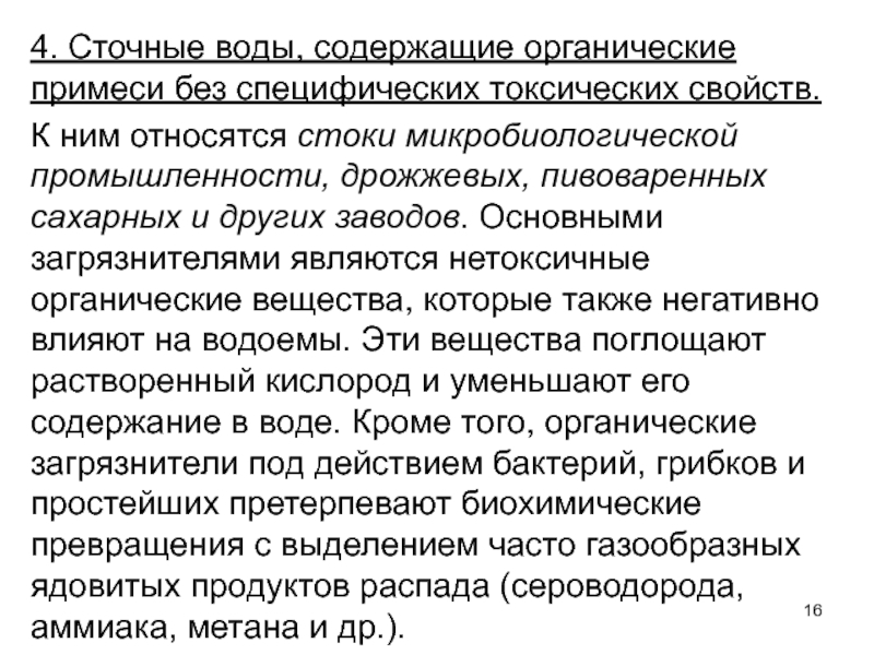 Слайд 164. Сточные воды, содержащие органические примеси без специфических токсических свойств.