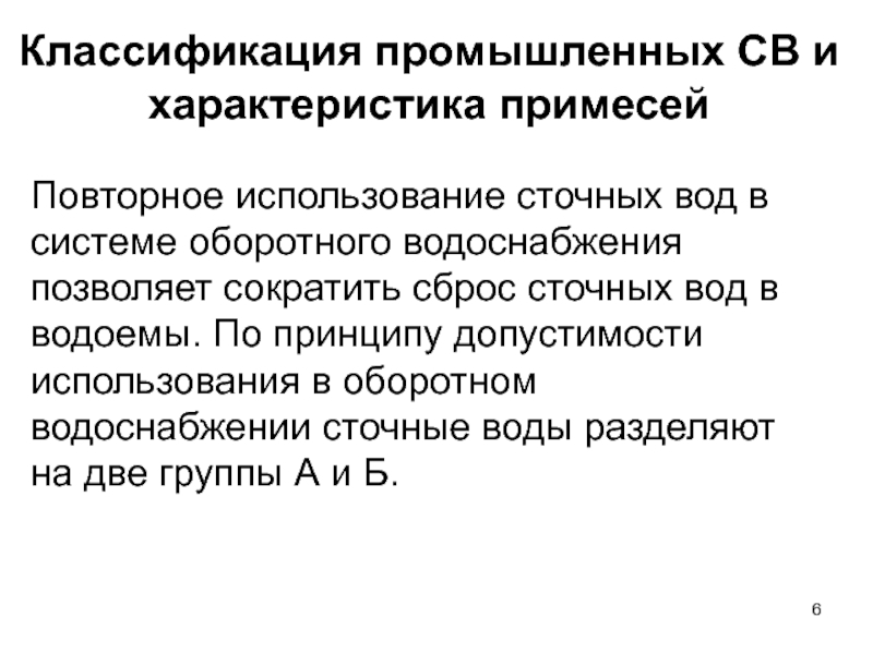 Слайд 6Повторное использование сточных вод в системе оборотного водоснабжения позволяет сократить